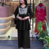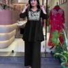 Women’s Chic Embroidered Cotton Slub Kurta Pant Set Size -XL