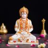 White Marble Lord Hanuman Sitting Statue with gada & Reading Book Decorative Showpiece