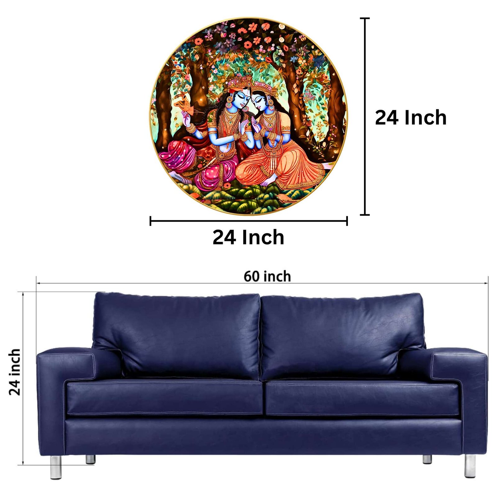 This Golden Round Frame painting with frame is made with high-gloss photo paper, featuring a unique glossy sparkle laminate that enhances the vibrancy and details of the artwork. Whether you are looking for a wall painting for living room or a wall painting for bedroom, this piece will add a touch of divinity and grace to any space. The high-quality finish ensures that this painting for wall decoration stands out.This Golden Round Frame painting big size is designed to fit seamlessly into your home decor, whether you are looking to enhance wall decor for bedroom or create an ambiance of peace in your living room. It is not just a Krishna Radha painting frame but also a meaningful symbol of love and devotion, making it one of the finest